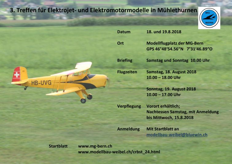3. Treffen für Elektrojet und Elektromotormodelle in Mühlethurnen 18. und 19.8.2018